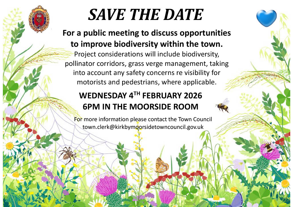 1. To note the date of the public meeting to discuss opportunities to improve biodiversity within the town on Wednesday 4th February at 6pm in The Moorside Room